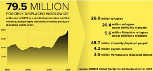 UNHCR estimates that approximately 56 million people are currently displaced. The civil wars taking place in many places of the world, alongside the environmental challenges, take a great toll on the number of people that are forced to abandon their countries and homes.